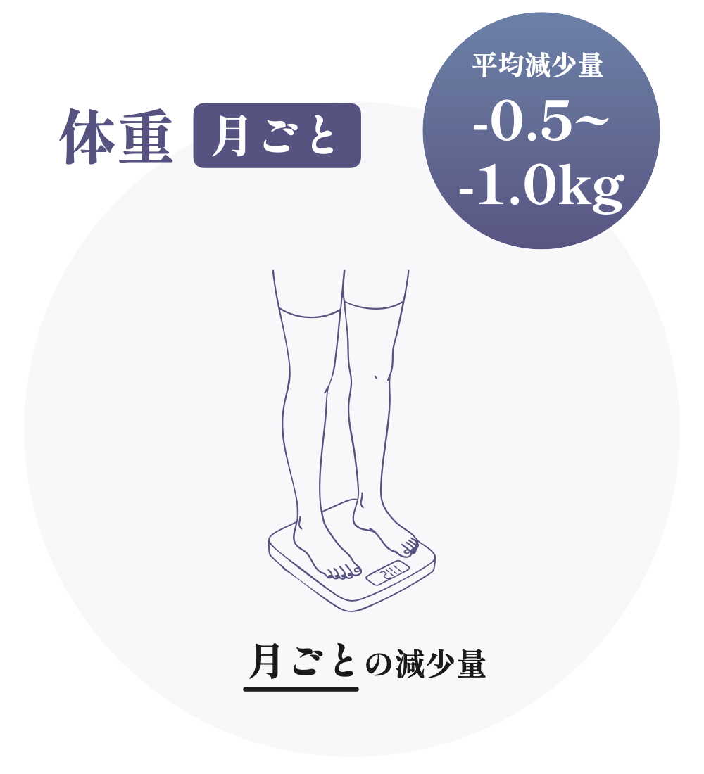 効果には個人差があります。また、筋肉量の増加により、体重が増える方もいらっしゃいます。なお、当院でのモニターの方々の実績では、95%以上の方が引き締め効果を実感されています。