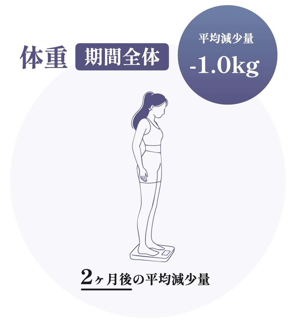 それぞれの方の運動習慣や食生活の状況にもよりますが、健康的な身体づくりおよび維持のためには、半年~1年以上の継続利用をお勧めしています。
