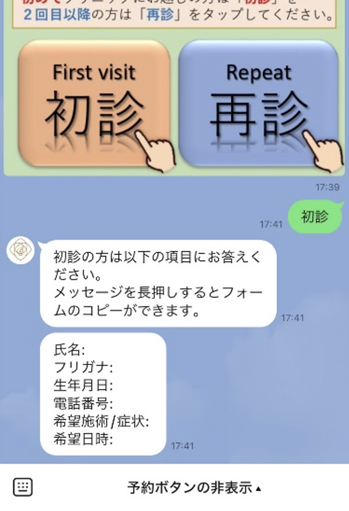 メッセージ確認後、当院より返信し、ご予約確定となります。